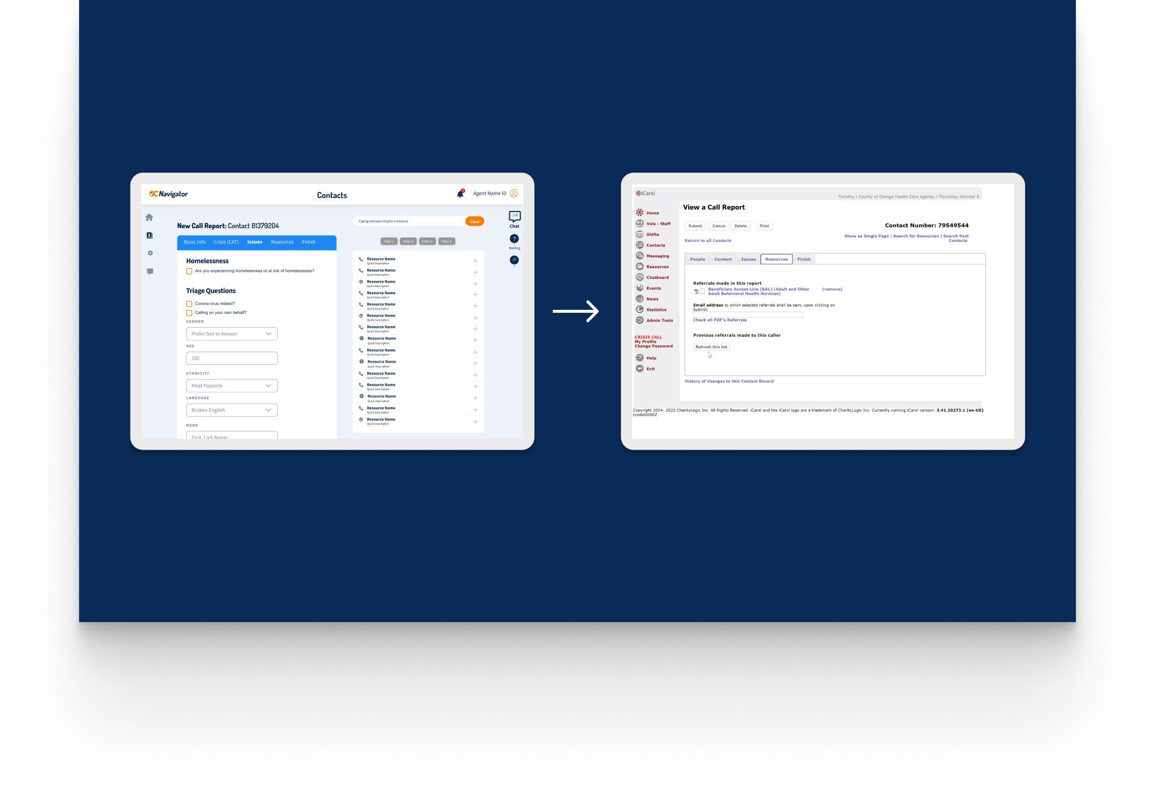 The mental health crisis response system in Orange County consisted of multiple disconnected services on outdated platforms. The system was a patchwork of disconnected services running on iCarol, an outdated software platform notoriously difficult to navigate. While the staff’s intentions were heroic, their tools actively worked against them. We found that three interconnected services, OC Links, the Crisis Assessment Team, and the NAMI WarmLine, were effectively functioning as islands. Data structures were messy and inconsistent, making it nearly impossible to track a caller’s journey across different agencies. If a resident needed to be transferred from a warm line to a crisis team, the information transfer was often manual and prone to error. The friction wasn’t just administrative; it was dangerous. Critical gaps emerged: vulnerable populations needed immediate intervention, but the system’s inability to facilitate real-time communication or trustworthy reporting led to delays. Responders were spending valuable minutes wrestling with software rather than supporting clients. The fragmentation led to inefficient resource allocation and, most critically, missed opportunities for intervention in a field where timing is everything.