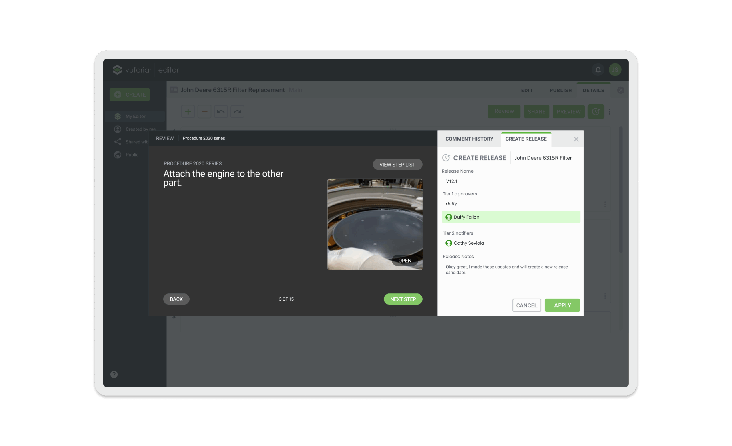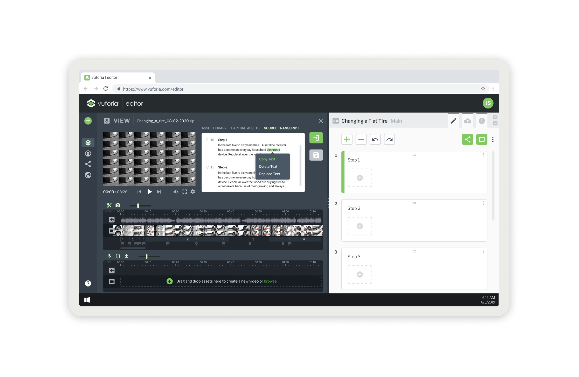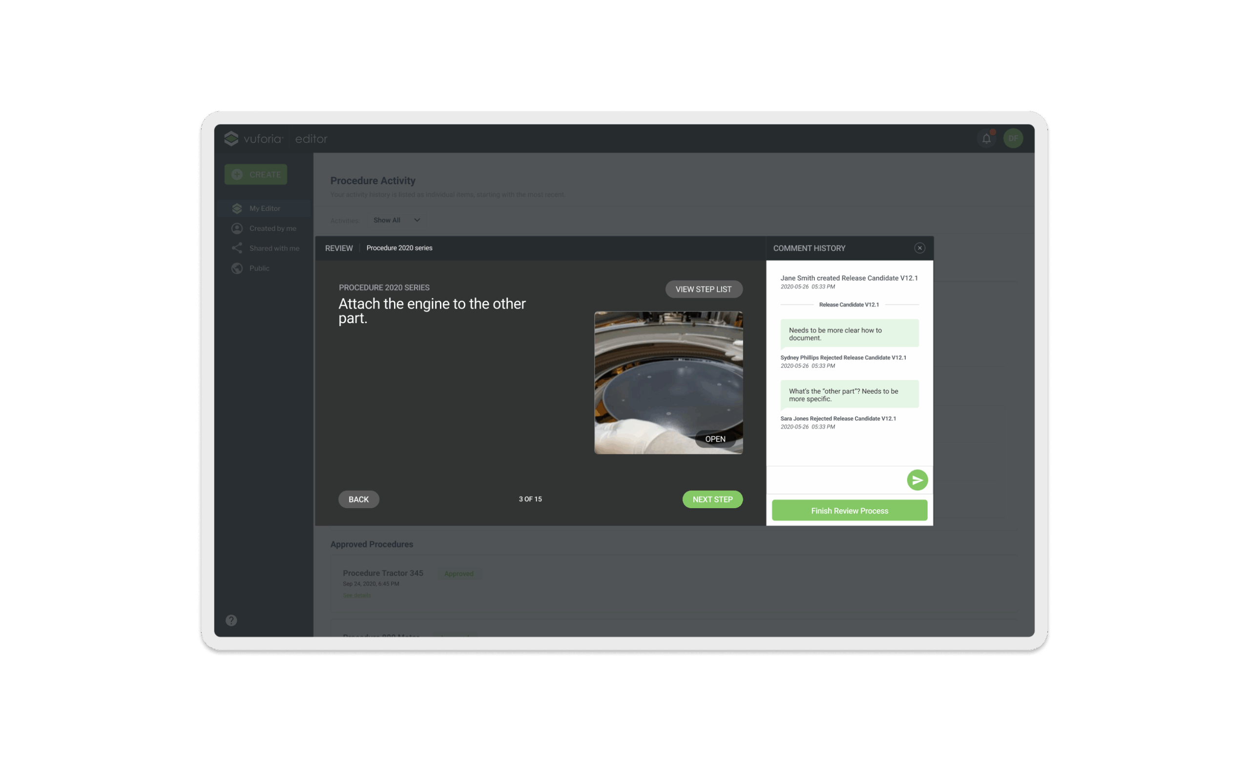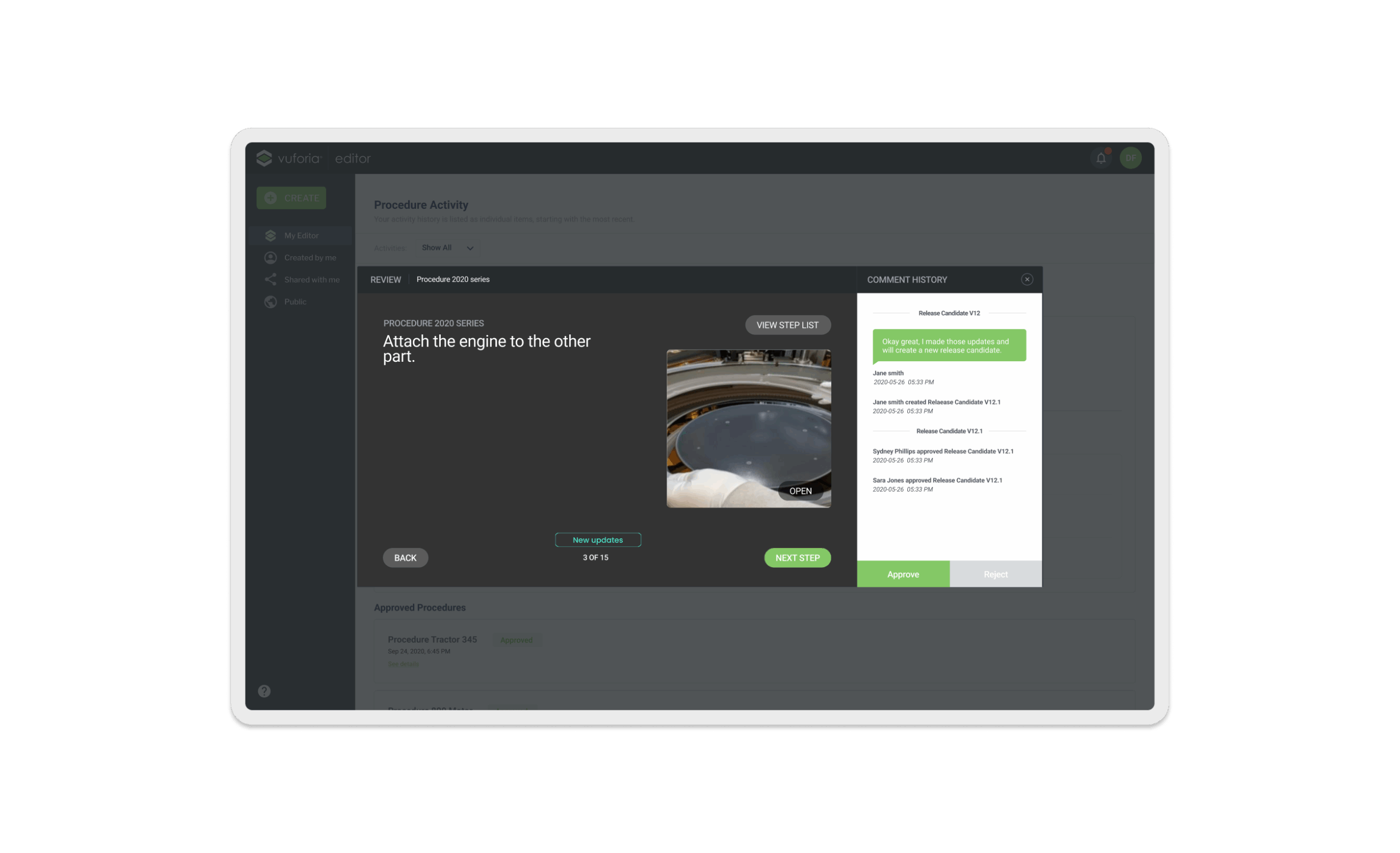 Vuforia Expert Capture is an easy-to-use SaaS AR solution designed to make frontline work more efficient. Vuforia Expert Capture enables companies to capture experts’ knowledge and leverage 3D CAD to easily create, deliver, and scale interactive work instructions and AI-enhanced inspections. Vuforia Expert Capture is a connected worker platform designed to bridge the gap between the physical and digital worlds through a cohesive three-part ecosystem. It begins with Capture, utilizing RealWear and HoloLens headsets to record raw footage directly in the field, and extends to View, the playback engine that delivers guidance to frontline workers. However, the core of my work centered on the Vuforia Editor (The Hub)—a secure SaaS web application that serves as the critical “middle layer” where messy reality is transformed into trusted business data. I helped design this web-based “refinement engine,” architecting the workflows that turn raw AR video into compliant, audit-ready operating procedures using AI transcription and rigorous governance.
