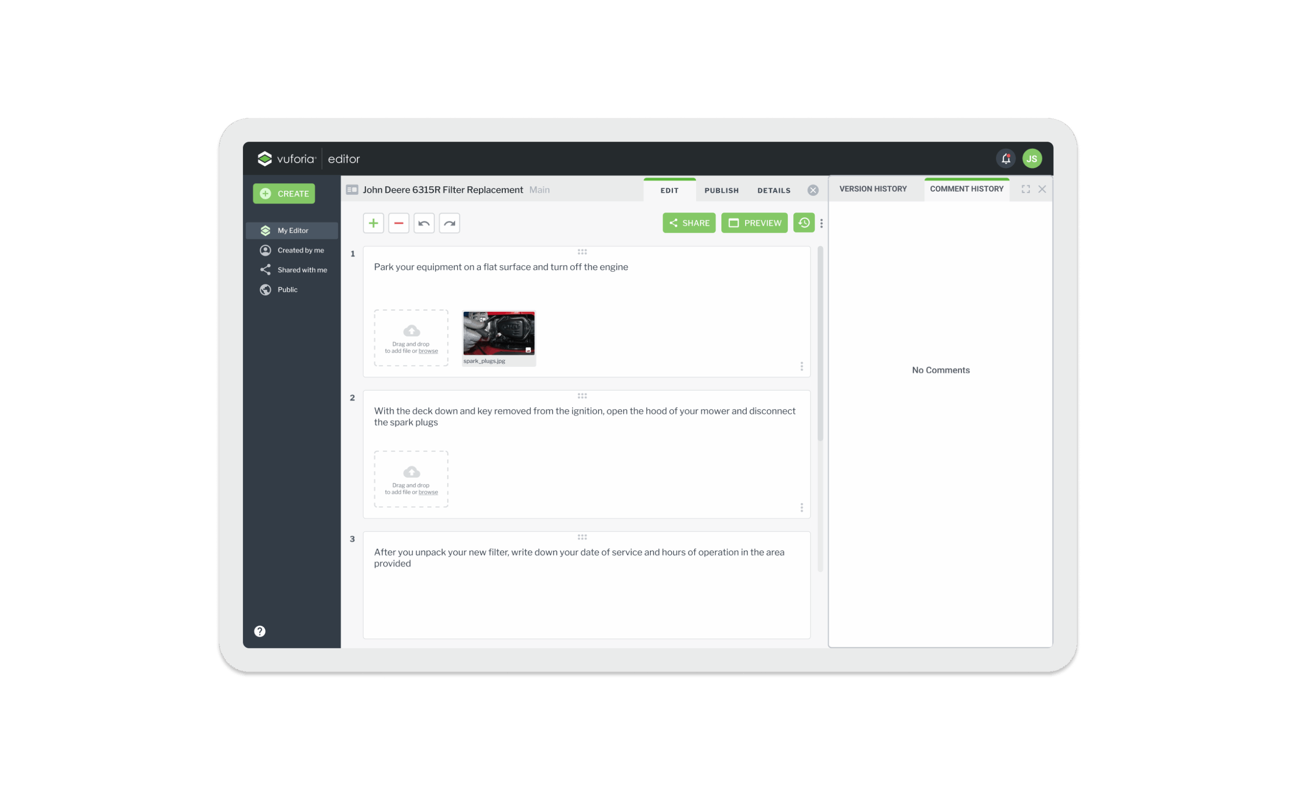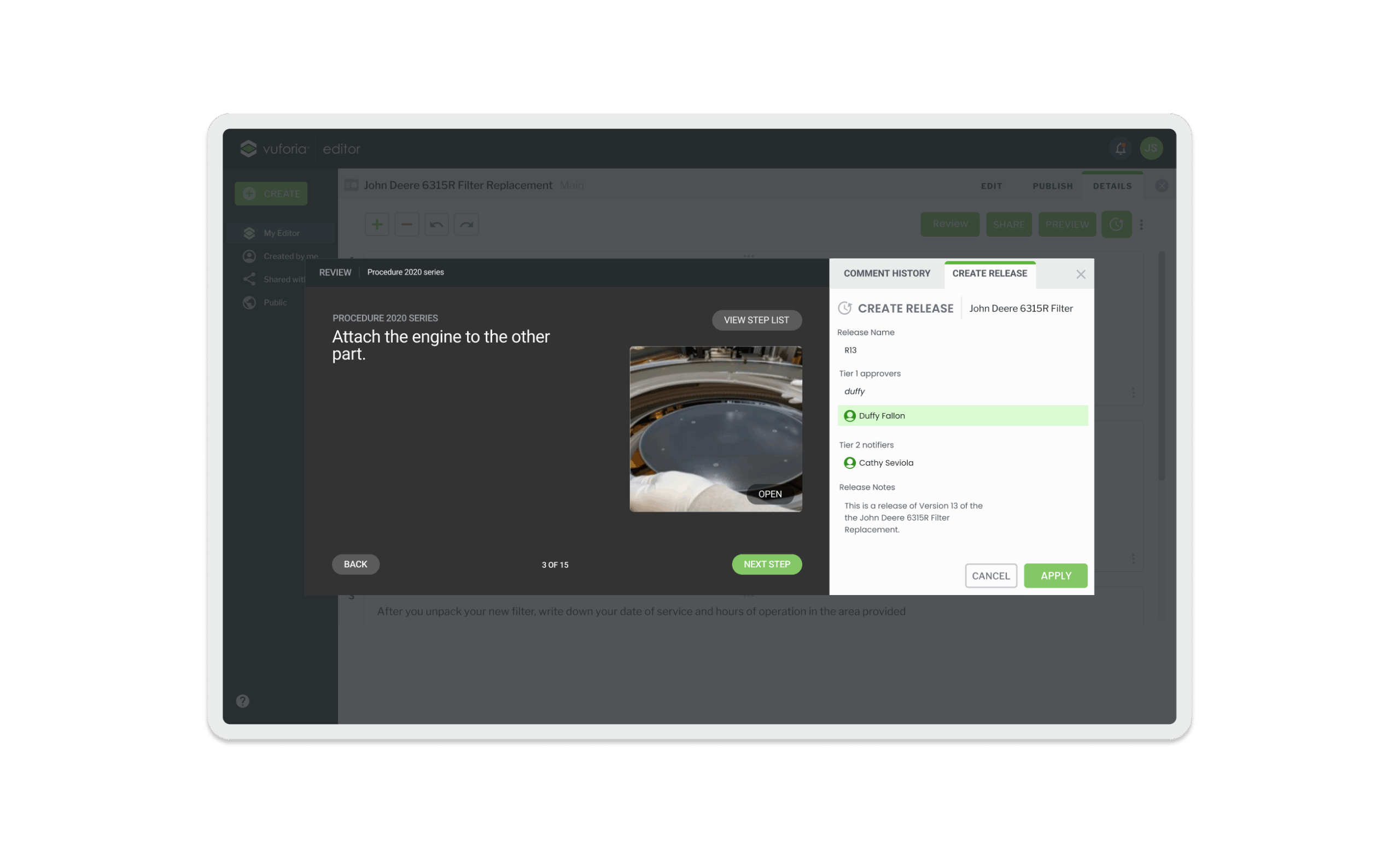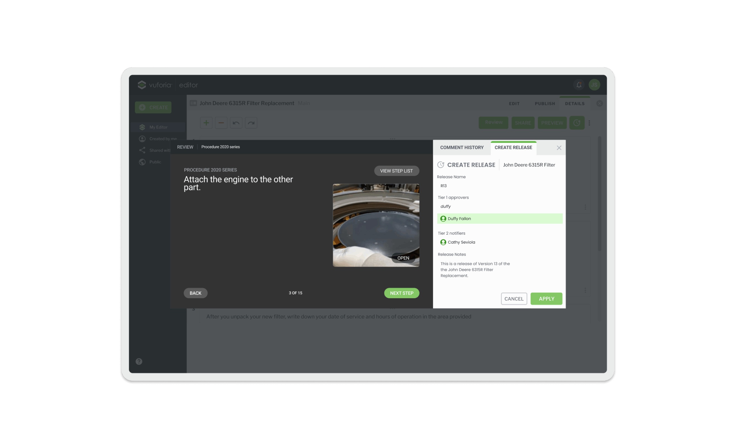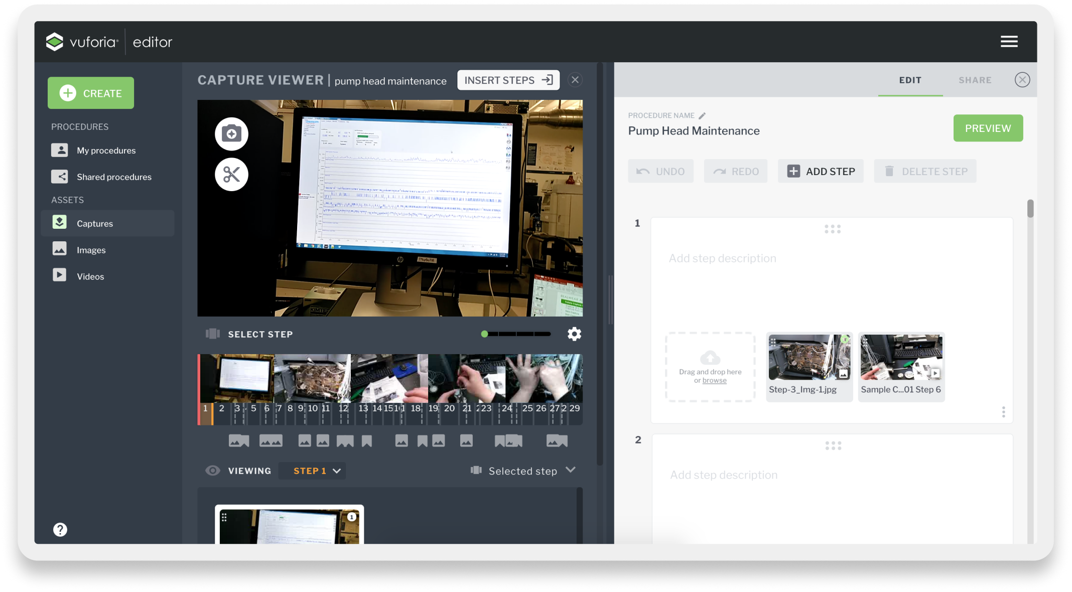 Vuforia Expert Capture is an easy-to-use SaaS AR solution designed to make frontline work more efficient. Vuforia Expert Capture enables companies to capture experts’ knowledge and leverage 3D CAD to easily create, deliver, and scale interactive work instructions and AI-enhanced inspections. Vuforia Expert Capture is a connected worker platform designed to bridge the gap between the physical and digital worlds through a cohesive three-part ecosystem. It begins with Capture, utilizing RealWear and HoloLens headsets to record raw footage directly in the field, and extends to View, the playback engine that delivers guidance to frontline workers. However, the core of my work centered on the Vuforia Editor (The Hub)—a secure SaaS web application that serves as the critical “middle layer” where messy reality is transformed into trusted business data. I helped design this web-based “refinement engine,” architecting the workflows that turn raw AR video into compliant, audit-ready operating procedures using AI transcription and rigorous governance.