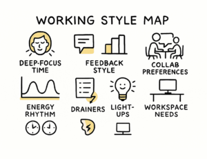 I hand new team members a simple Working Style sheet: nothing fancy, just questions about when you think deepest, how you like feedback, what drains you, and what lights you up. One designer told me weekly syncs were killing her momentum; she needed long, uninterrupted mornings. We shifted her cadence, and six weeks later, she was shipping the strongest work of her career. When you’re honest about your superpowers and blind spots, I can build balanced pairs and squads where everyone actually learns from each other.