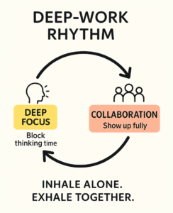 They treat deep work as non-negotiable and collective intelligence as sacred. The rhythm feels almost biological: inhale alone, exhale together.