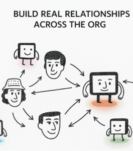 Schedule recurring coffee or 20-minute syncs with your key product, eng, research, and marketing partners. Learn with genuine curiosity what keeps them up at night. Show early work, ask dumb questions, give them context before they need it. Over time, those relationships become the hidden rails that let good design actually ship.